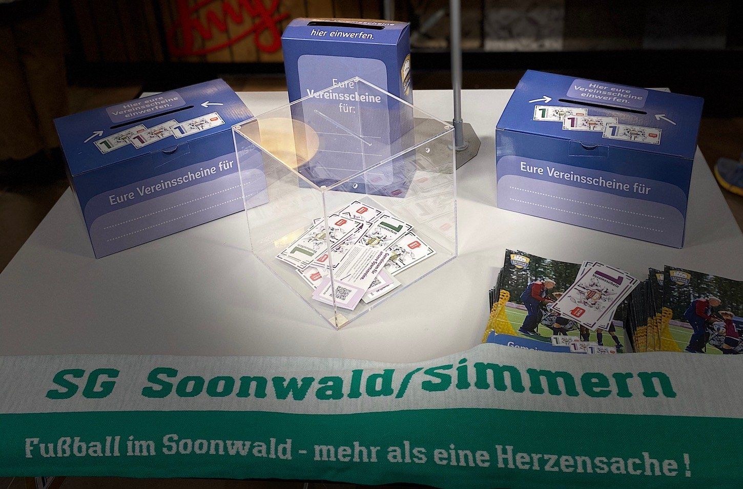 Bei einem Einkaufswert von 15 Euro erhaltet ihr an der Kasse einen Vereinsschein, den könnt ihr online über SG Soonwald Simmern einscannen oder vor Ort bei REWEÜnal in unsere Spendenbox werfen!